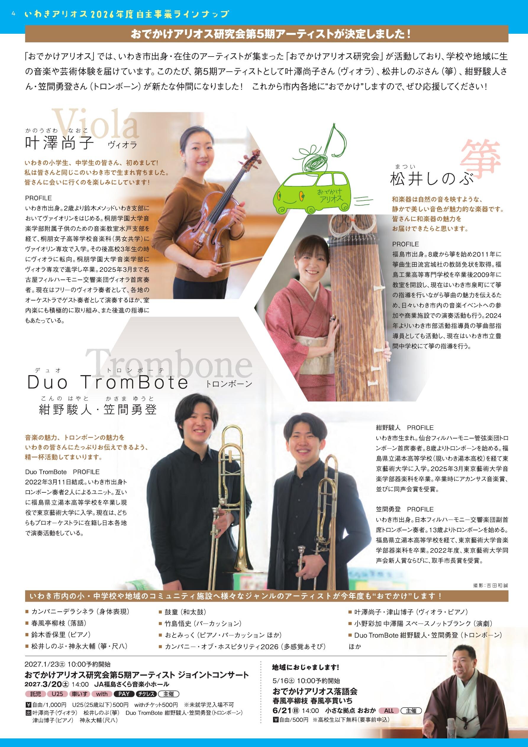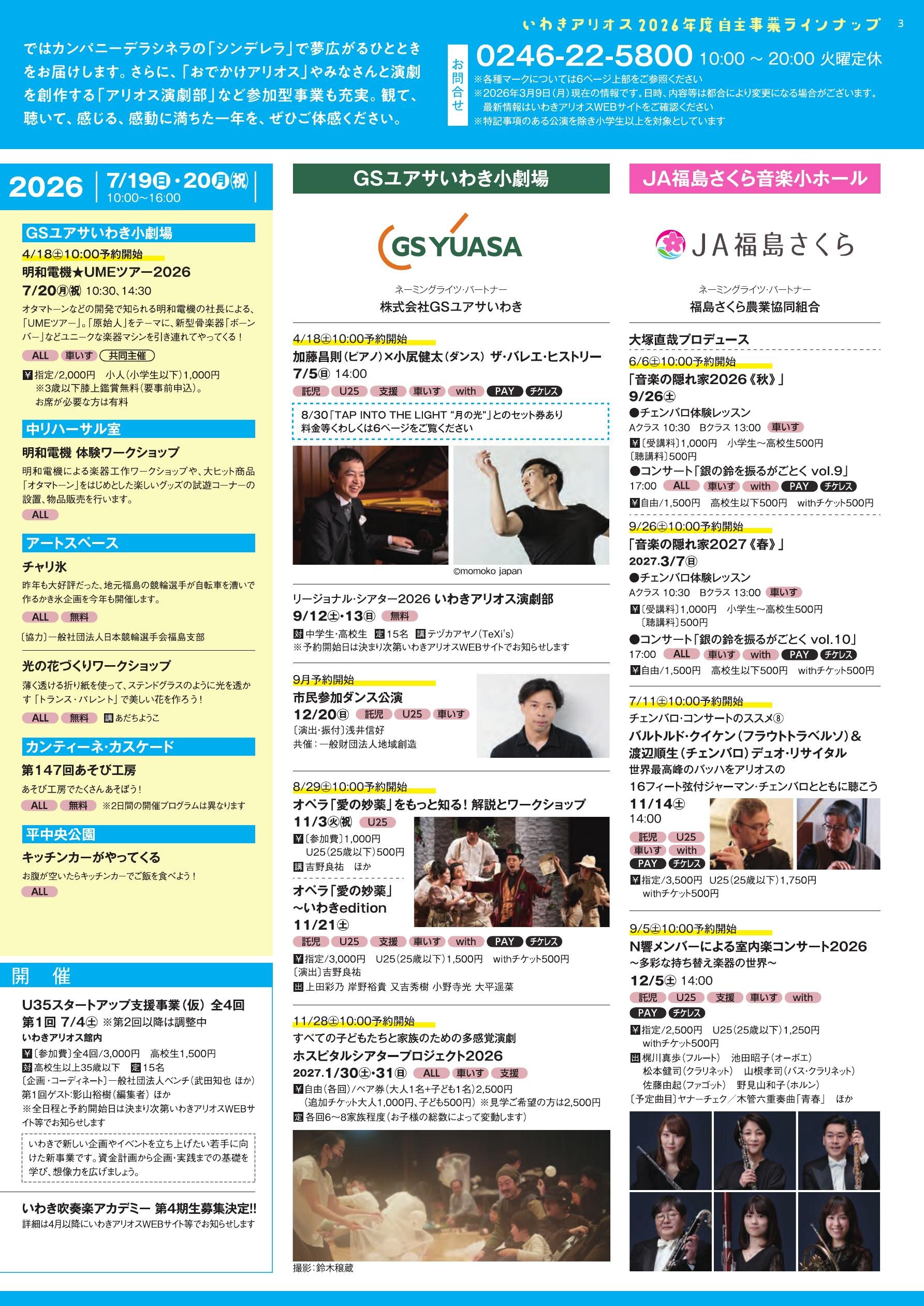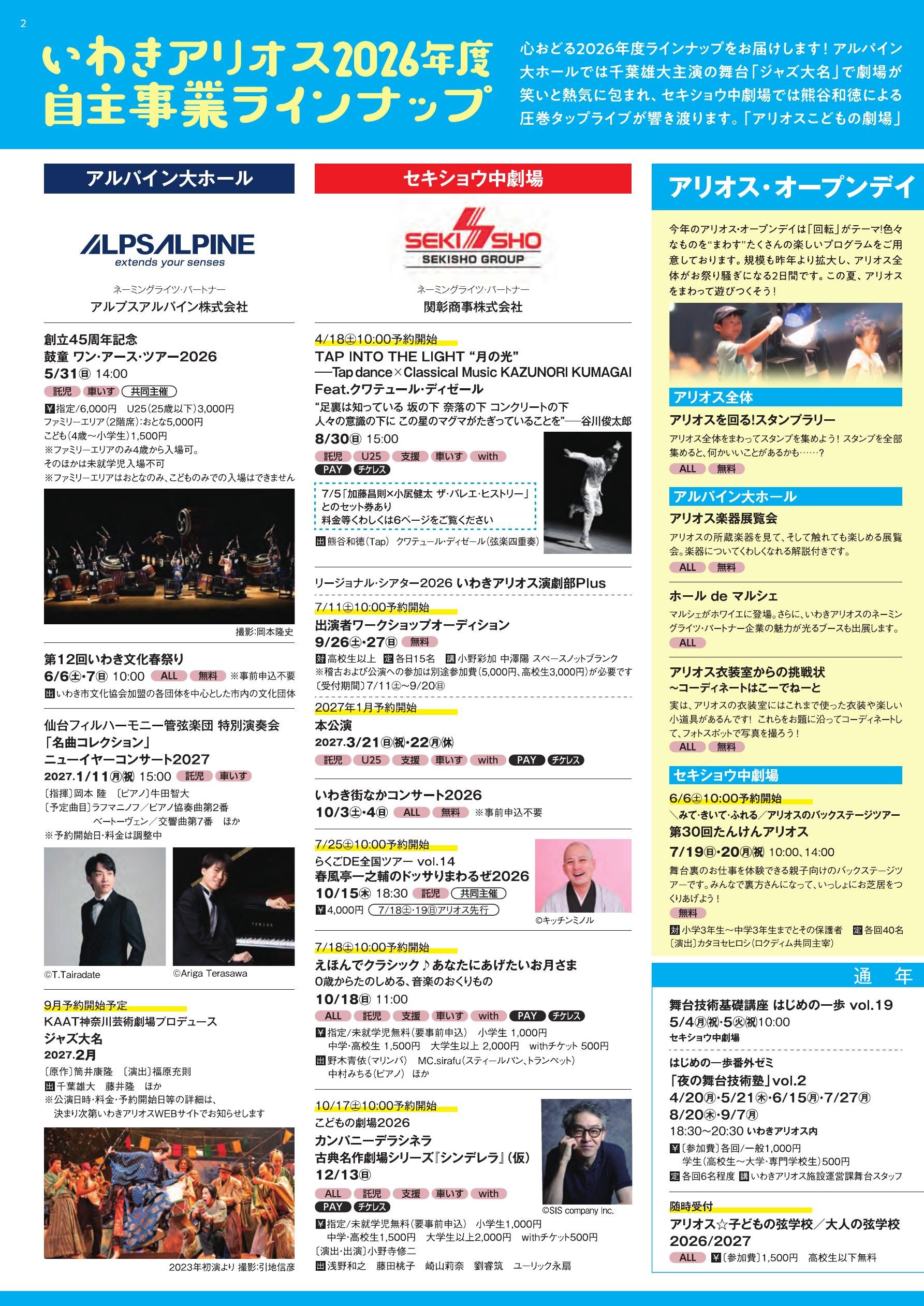 〈P2〜4〉特集:いわきアリオス2026年度自主事業ラインナップ