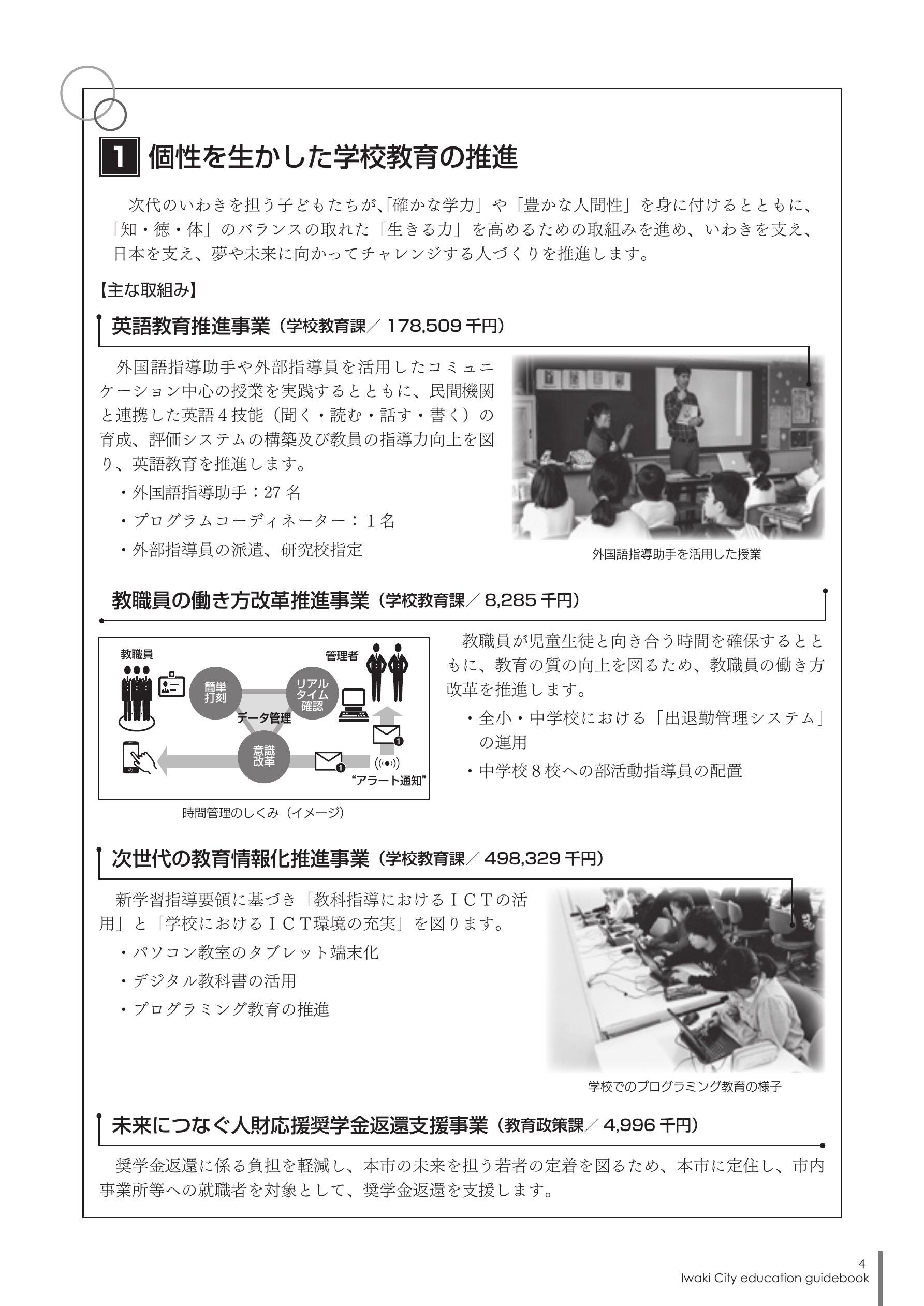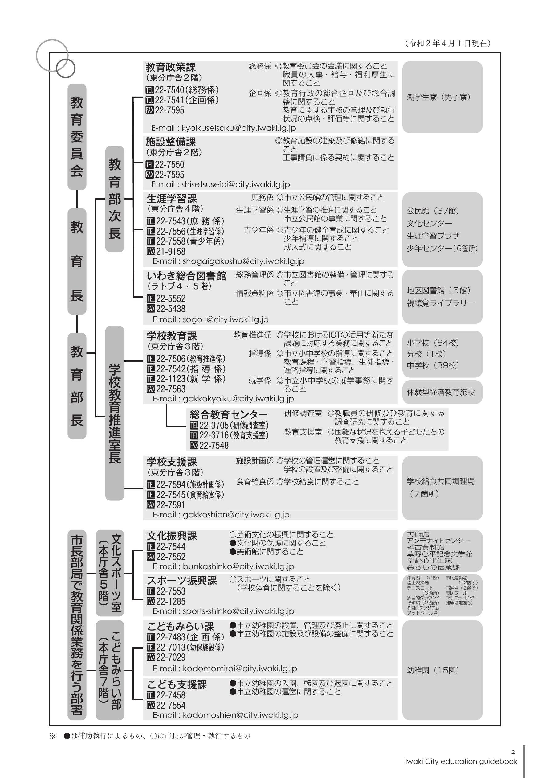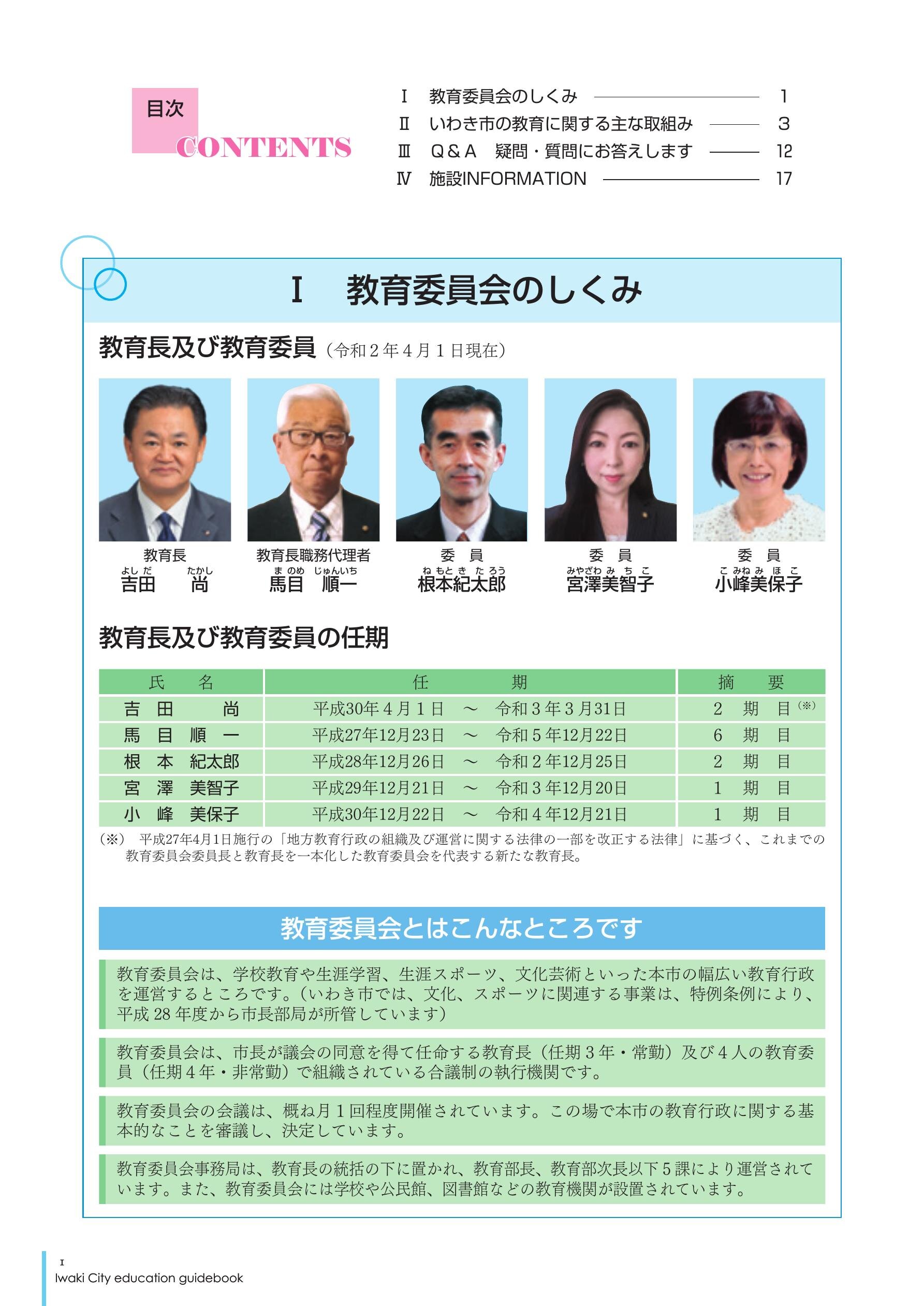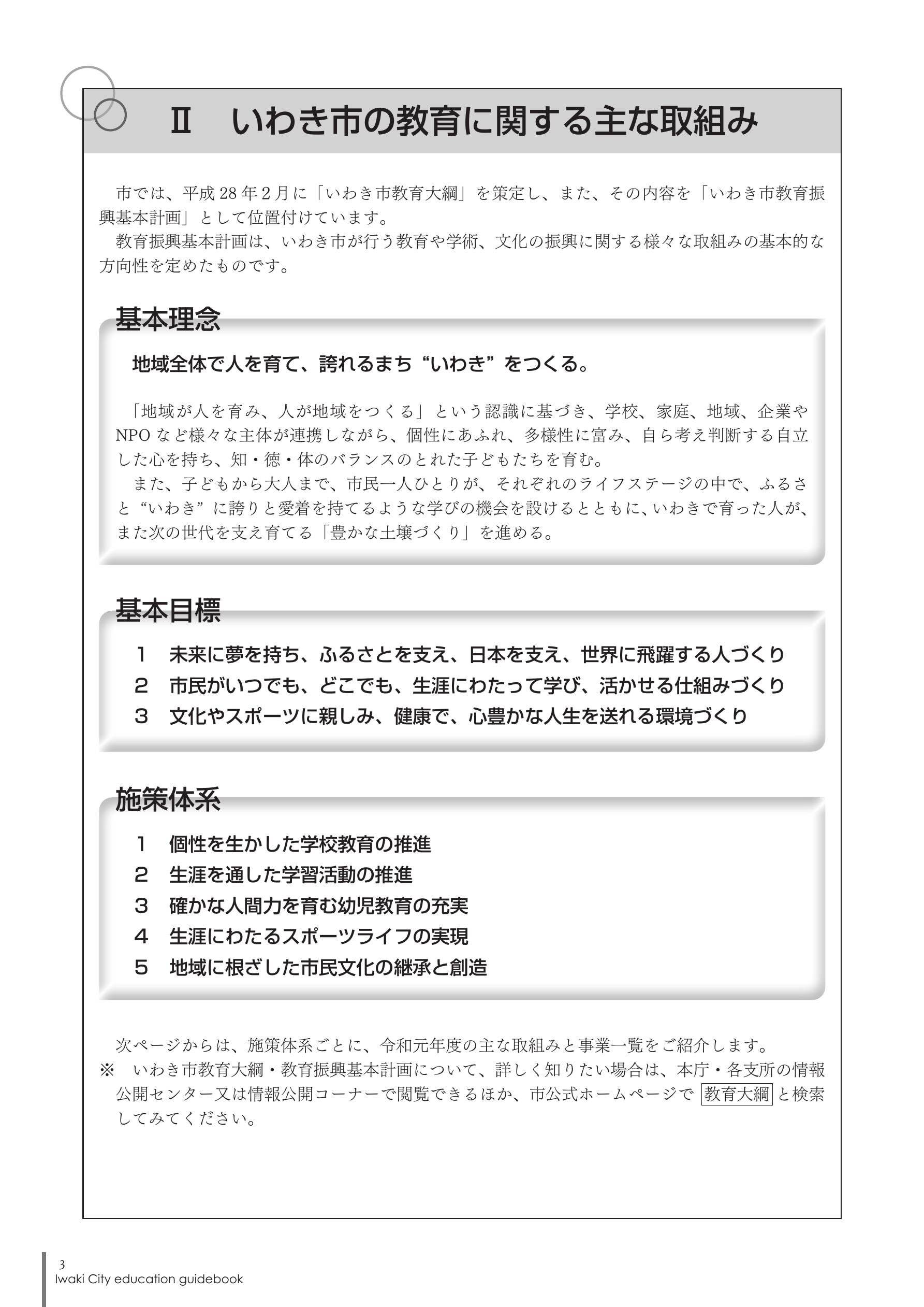 Ⅰ 教育委員会のしくみ 1 Ⅱ いわき市の教育に関する主な取組み 3 Ⅲ Q&A 疑問・質問にお答えします 12 Ⅳ 施設INFORMATION 17