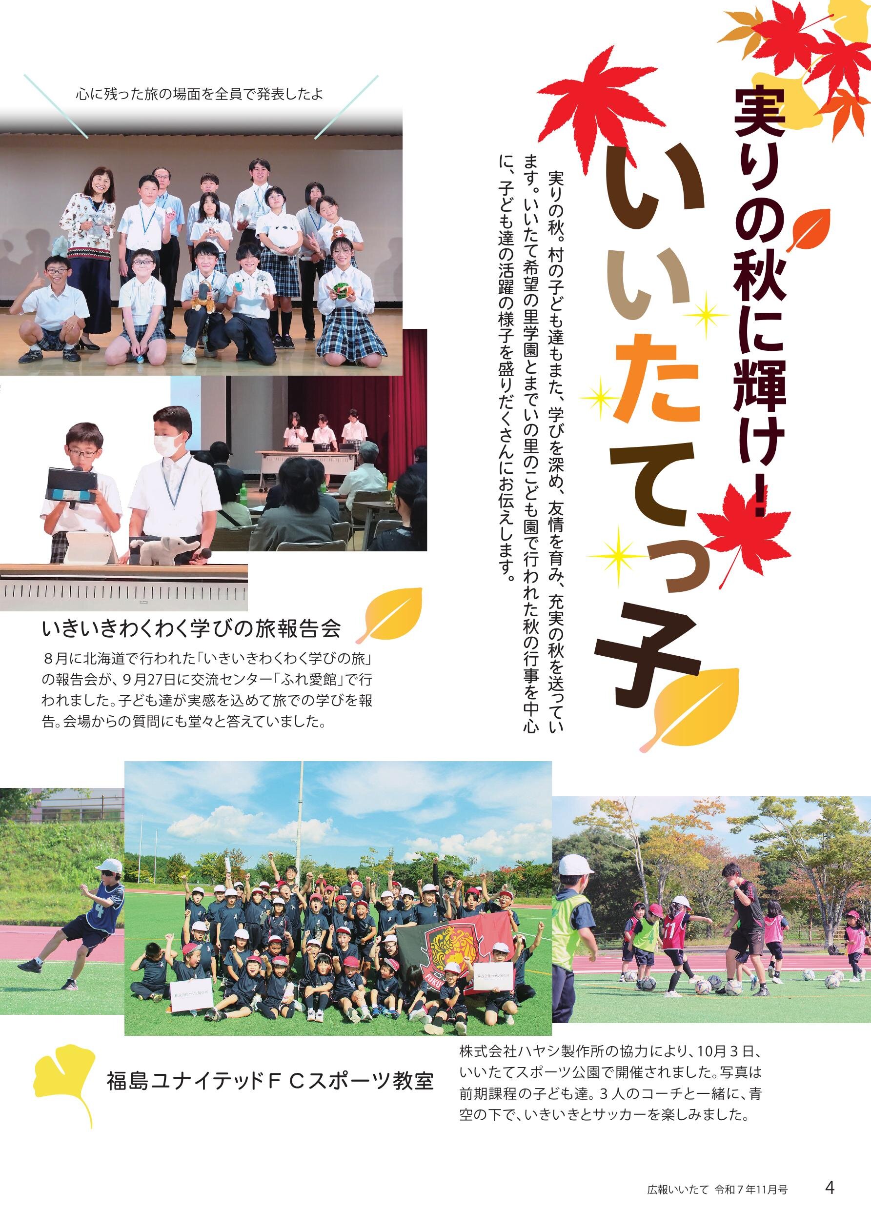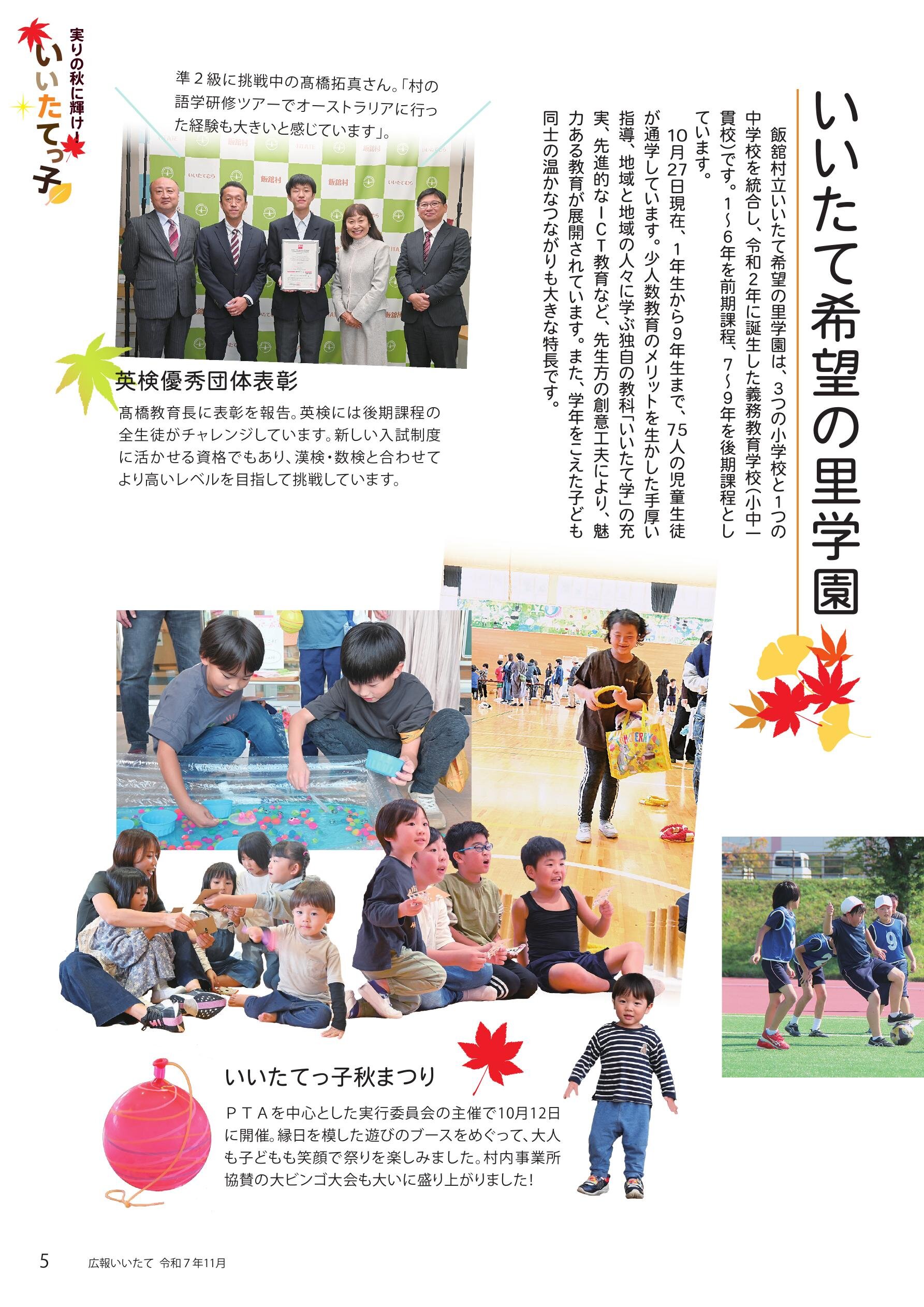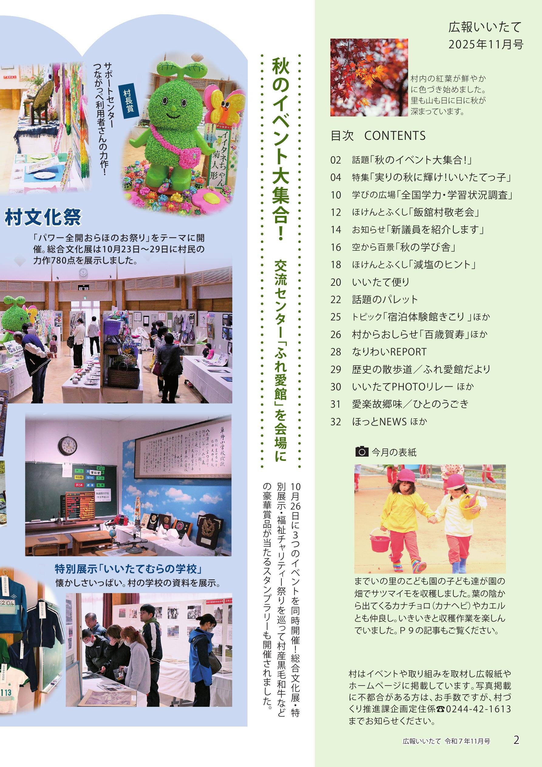 02 話題「秋のイベント大集合!」 04 特集「実りの秋に輝け!いいたてっ子」