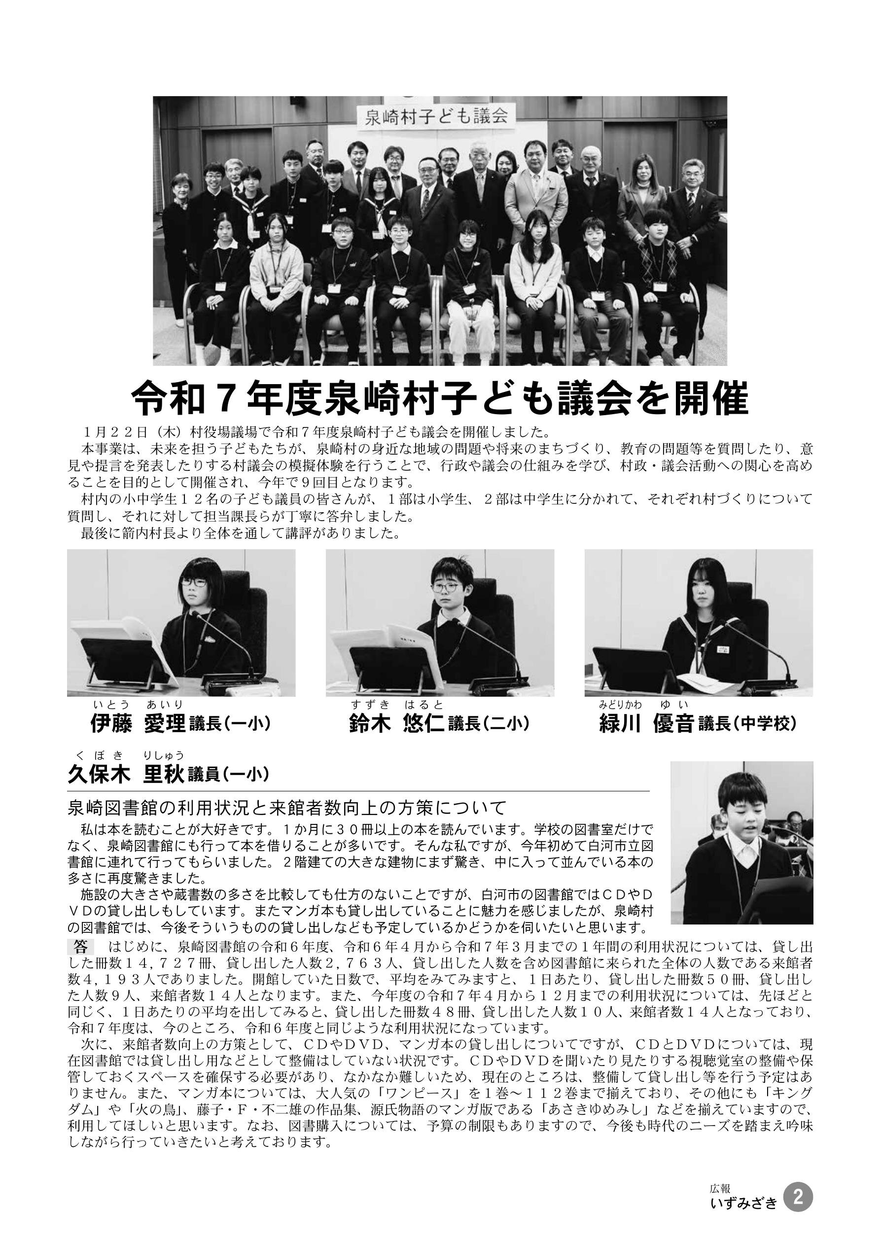 令和7年度泉崎村子ども議会を開催・・・2 役場からの便り・・・7