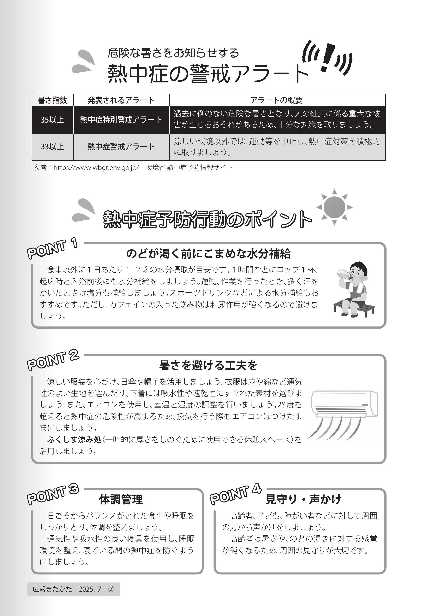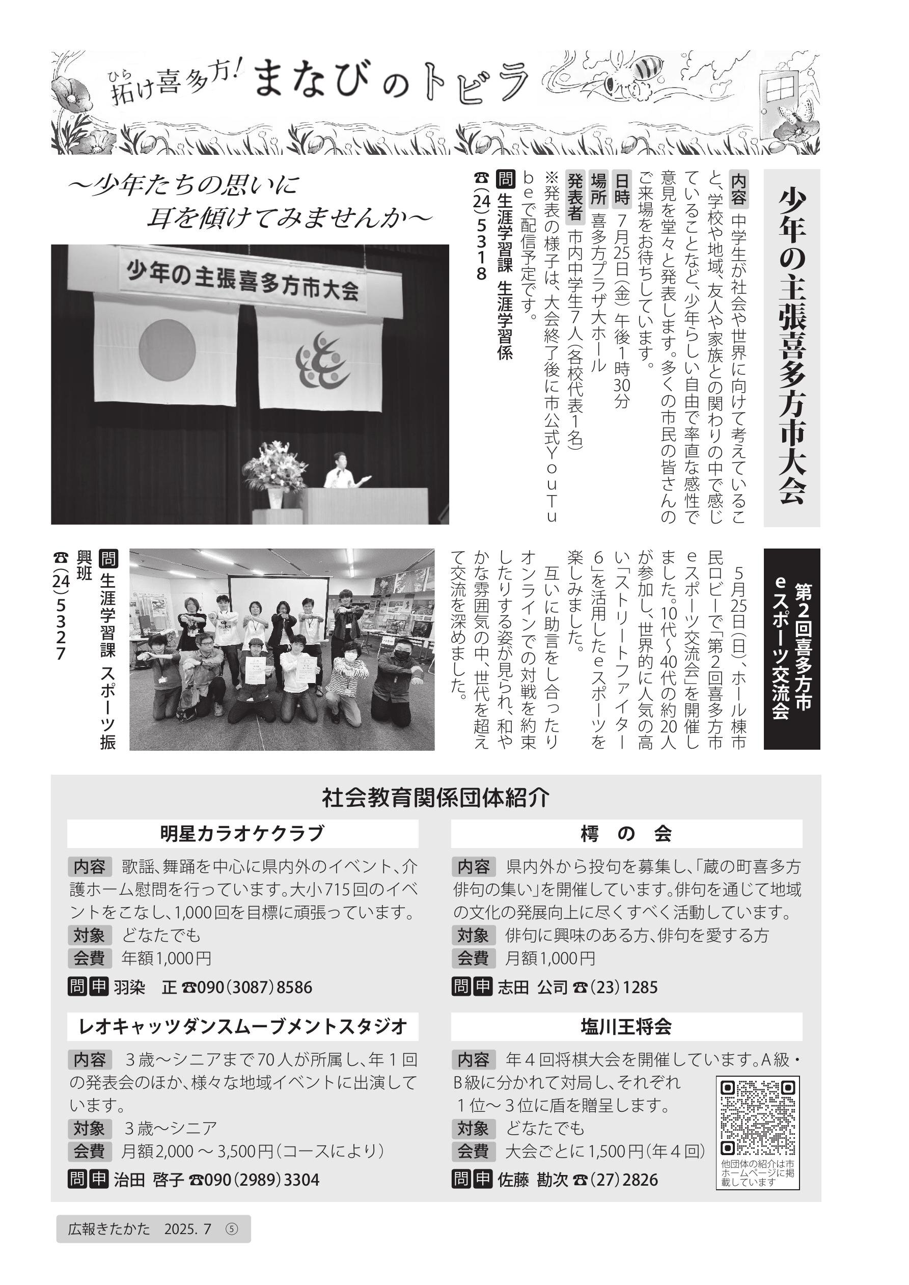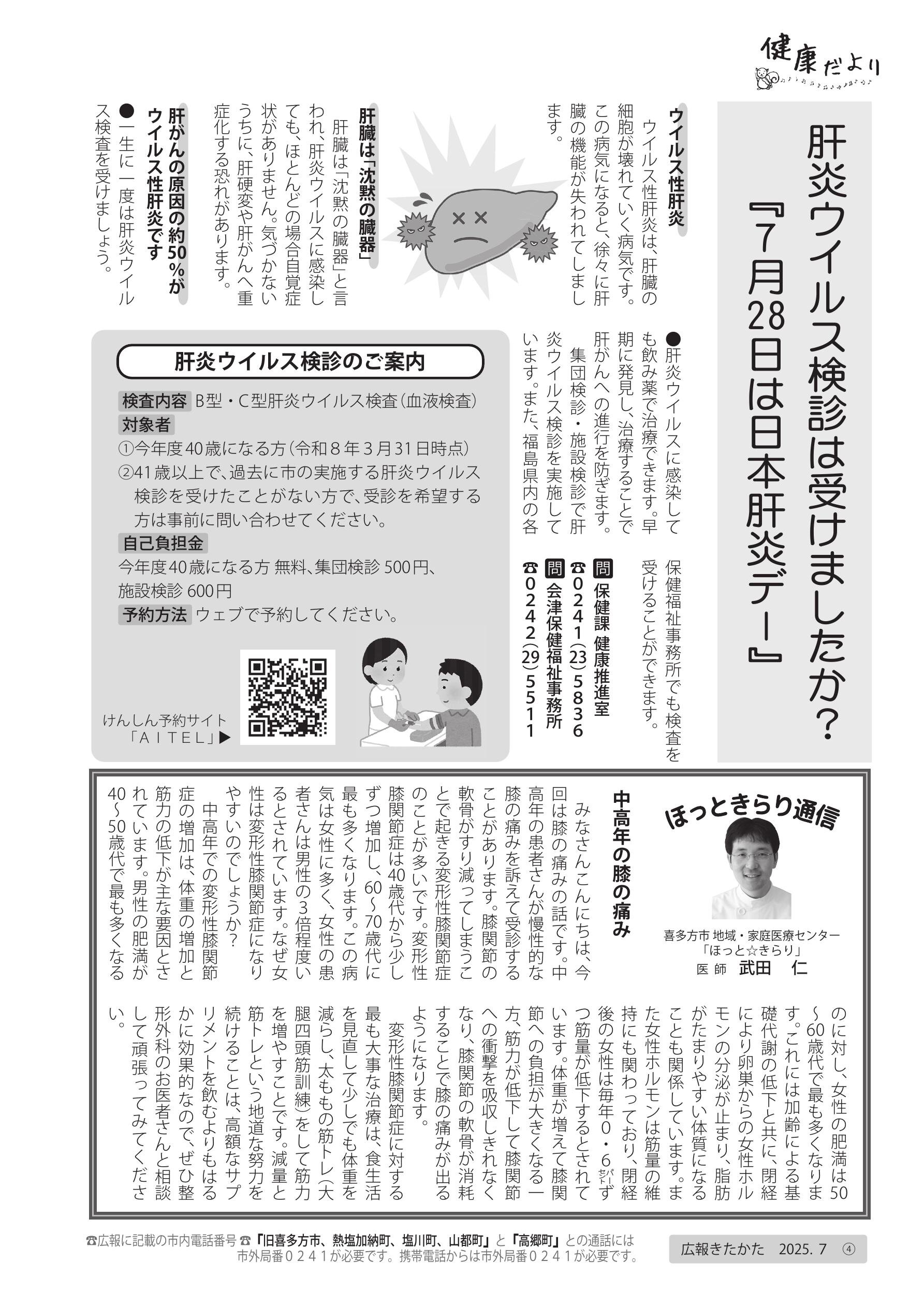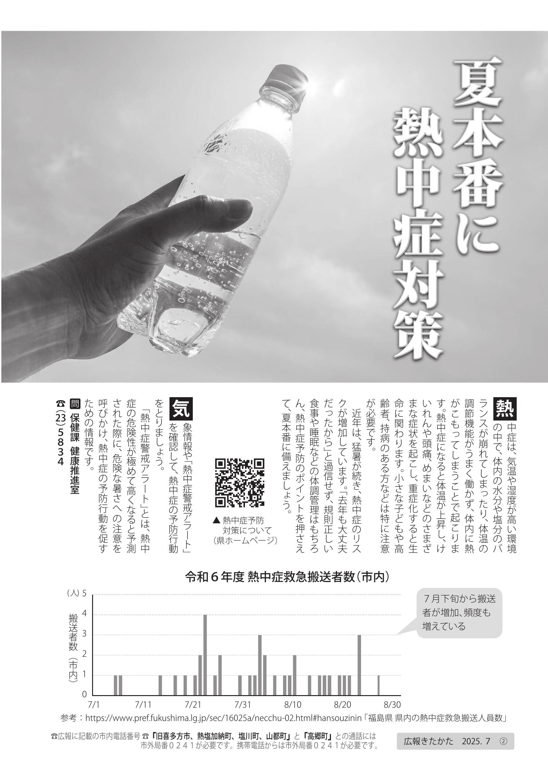 熱中症予防・・・2 健康だより・・・4 拓け喜多方!まなびのトビラ・・・5 情報ステーション・・・6 きたかたフォトニュース・・・16