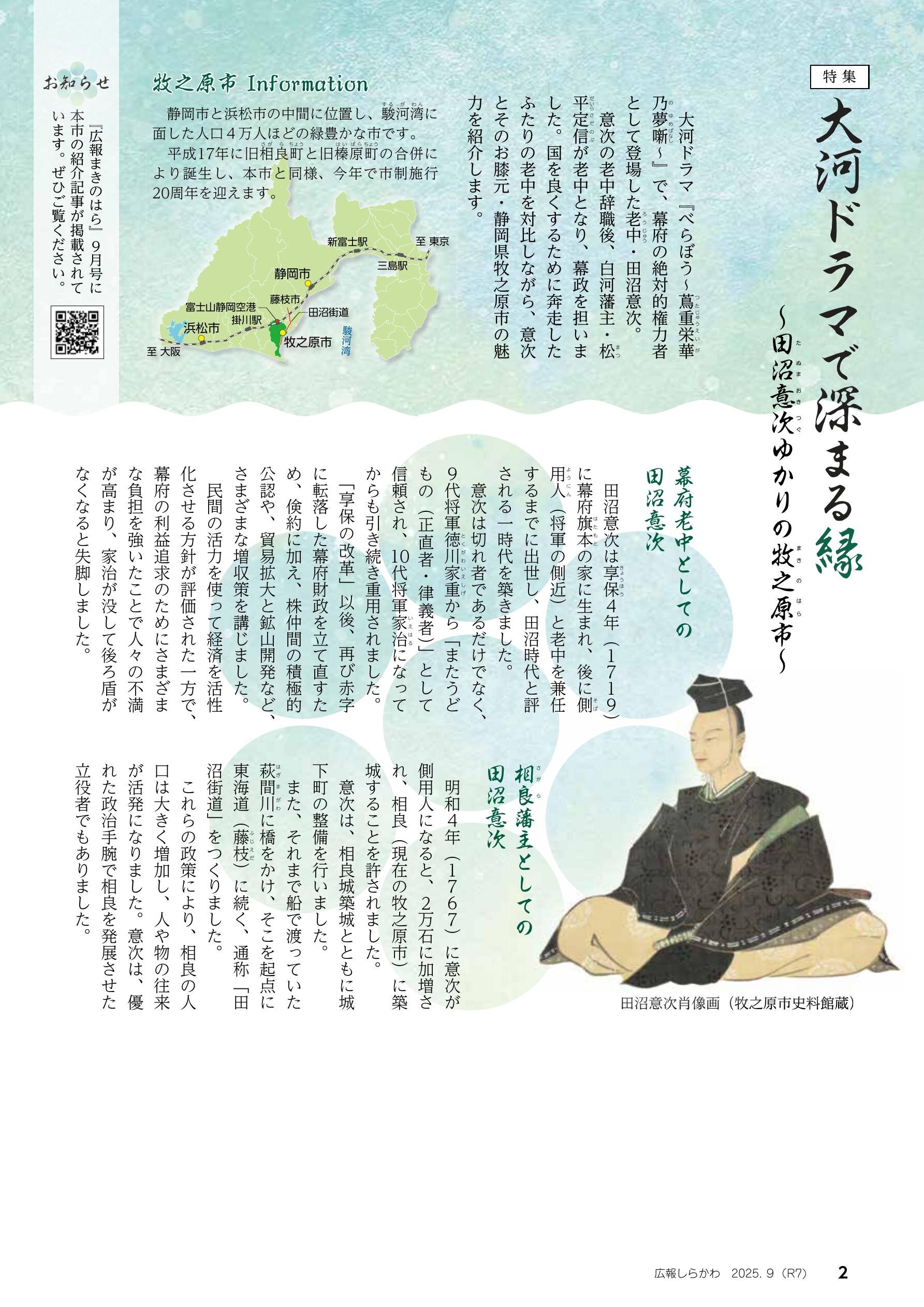 大河ドラマで深まる縁 〜田沼意次ゆかりの牧之原市〜・・・2 牧之原市の今〜観光と文化を楽しむ〜・・・4